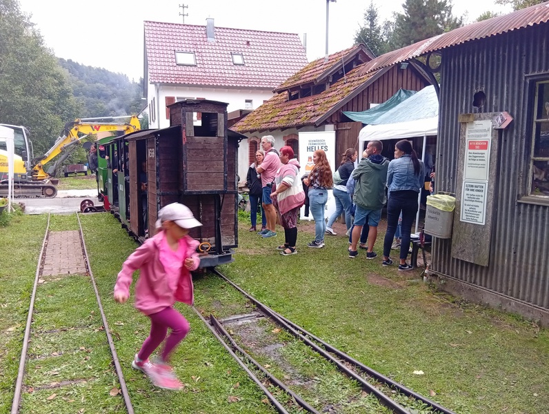 Bei spätsommerlichem Wetter hatten wir wieder sehr großen Zulauf. Die Hauptlast des Verkehrs bewältigte die Damplok, aber auch die Diema, die O&K und der Triebwagen waren im Einsatz. Im Bahnhofscafé gab es leckere Kuchen und Crêpes, die "Wetzstoihexa" verwöhnten die Besucher mit Würstchen vom Grill und Beilagen. Am Besucherbergwerk verkehrte Michael Jahnles Original Grubenzug aus Bartz E-lok mit Mannschaftswagen aus dem Salzbergwerk Berchtesgaden