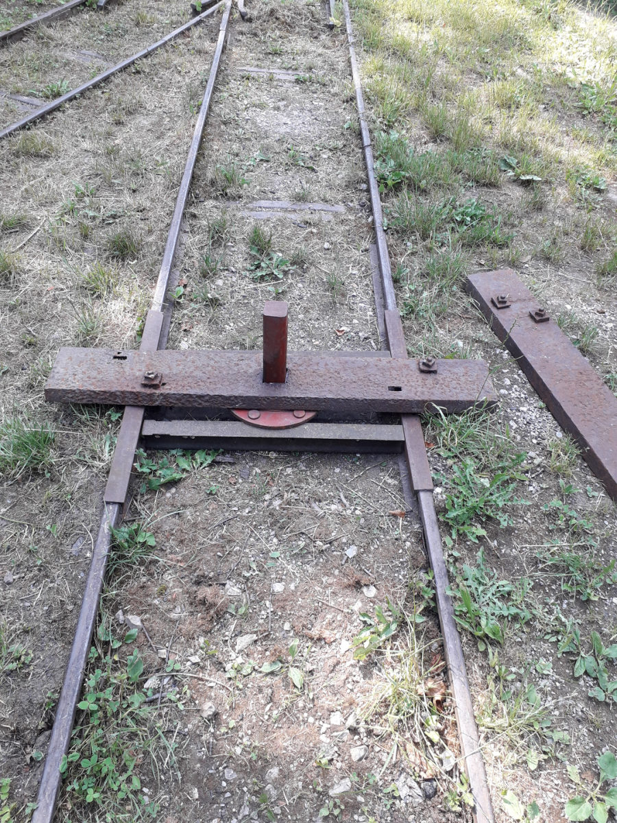 Über einen einsteckbaren Keil, der auch als Drehsperre dient, kann der Triebwagen auf die Bühne fahren.